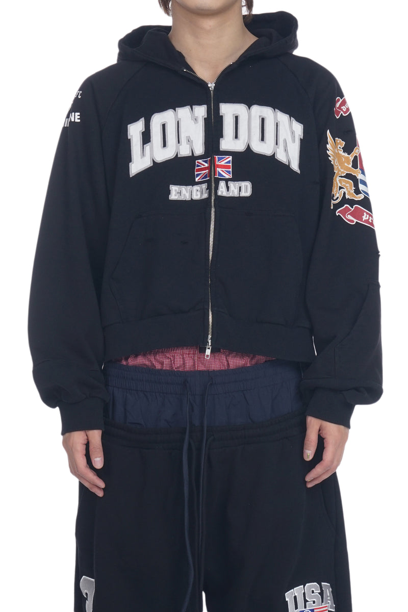 RECONSTRUCTED FOLDED ZIP HOODIE